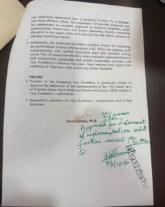 The decision followed a leaked November 7, 2025 memo, titled: “Deferment of the commencement of implementation of thePremium Motor Spirit (PMS) and diesel import duty,” signed by Zach Adedeji, PhD. It acknowledged the good intentions of the policy but added that “following a thorough assessment of the market conditions and the agreed strategy implementation roadmap, it was collectively determined that it is necessary to allow for a smoother and more efficient roll out.” It, therefore, prayed for a postponement to January 2026.